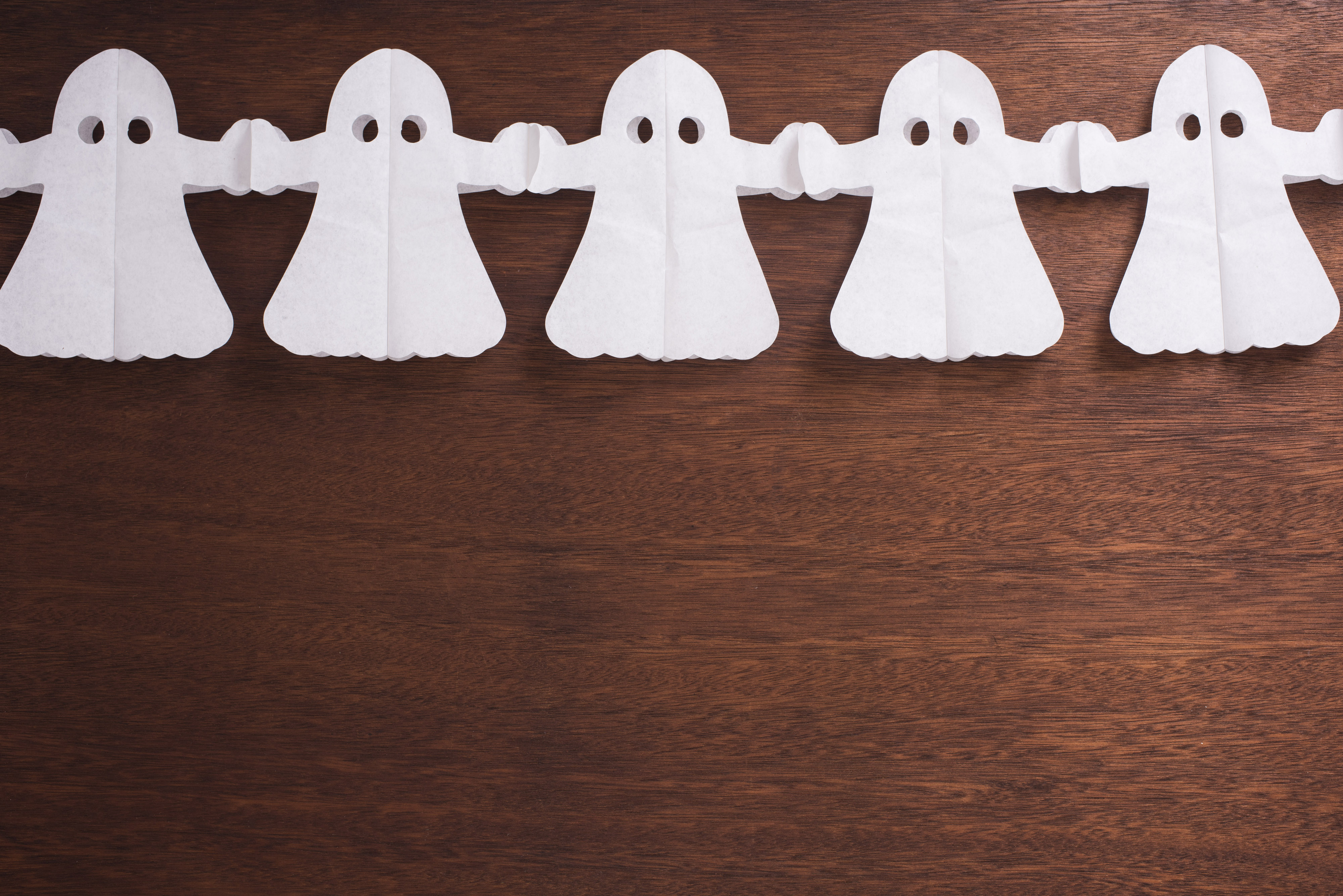 halloween spooky creepy white ghost paper chain banner bunting wood wooden line five holding hands cute
