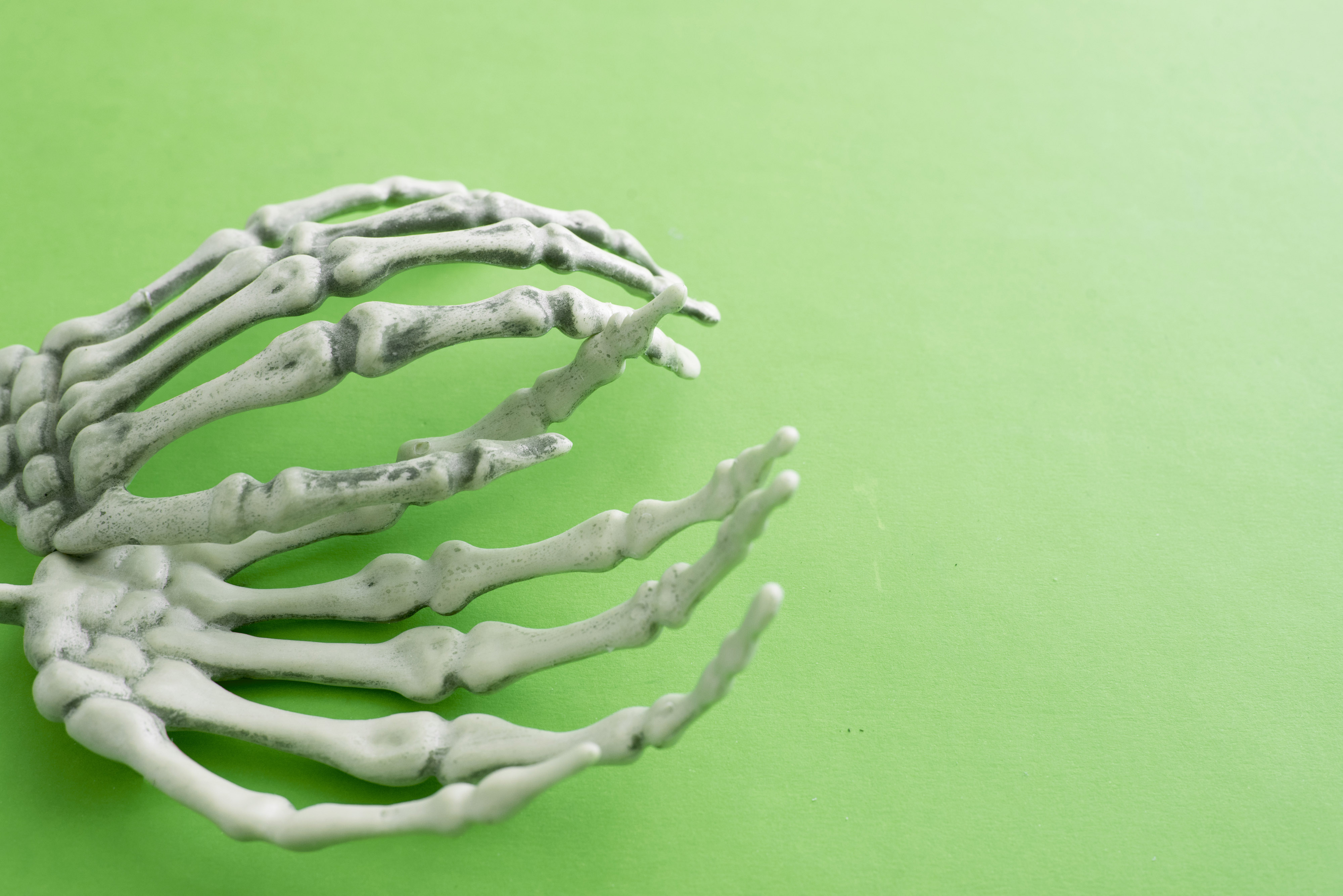 bone skeleton boney bones green fingers clapping palms palm creepy halloween decoration fun copyspace negative space