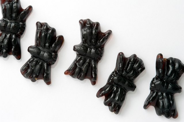 black candies close-up fake food fruity funny halloween high angle holiday insect jelly leg scary spider sweet tasty trick tricky white background