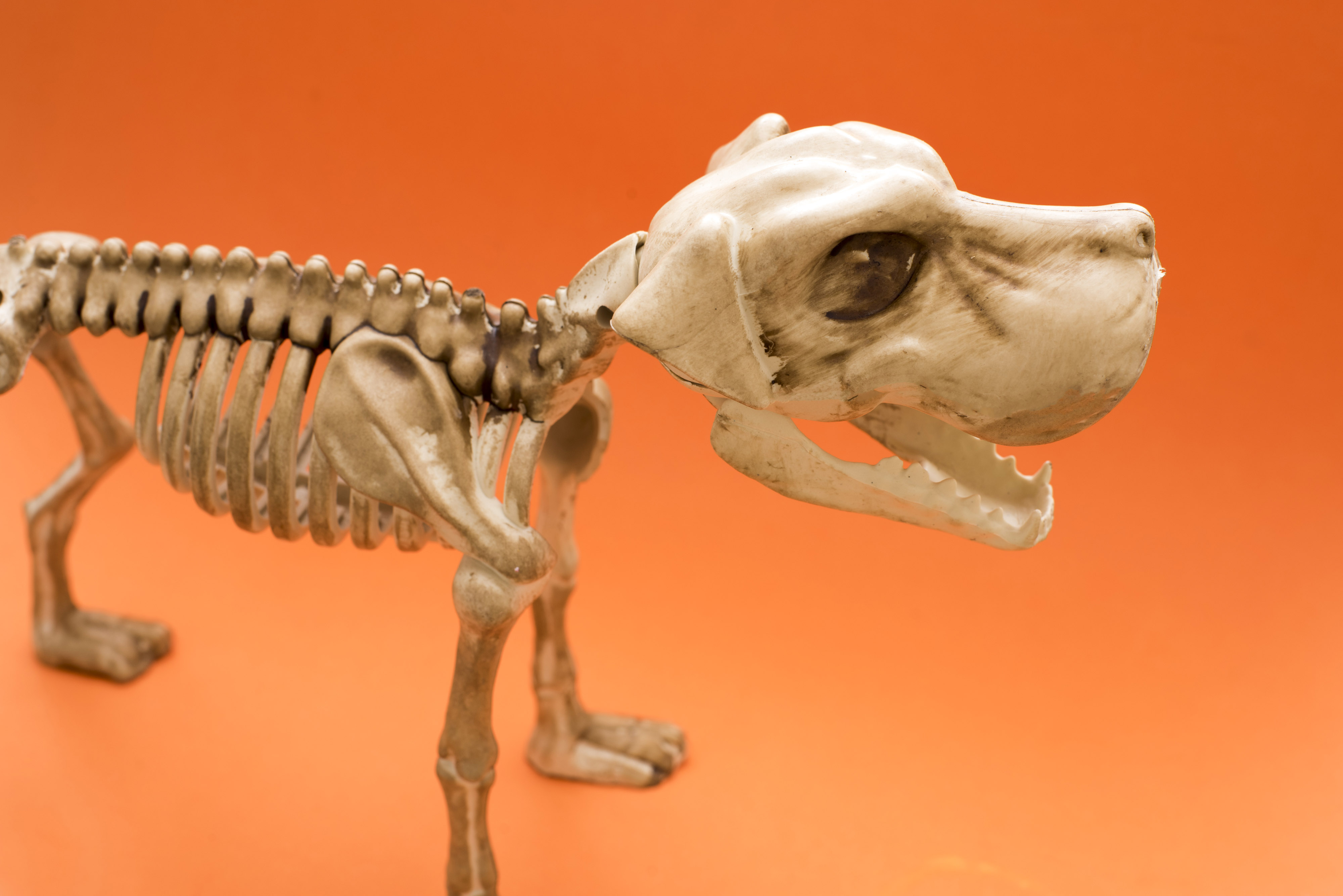 dog skull eyes halloween head skeleton bones toy plastic decoration festive orange canine barking